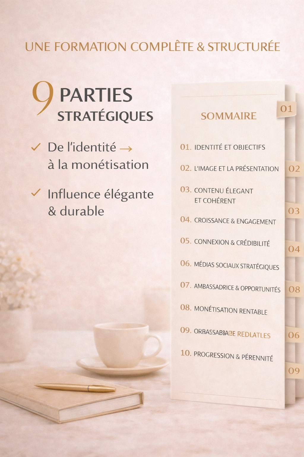 La formation est structurée en plusieurs modules clairs, accompagnés d’un plan d’action sur 30 jours, pour passer à l’action étape par étape, sans pression.